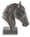 An exquisite work of art, this horse head sculpture is sure to grace your space with traditional flair. The antiqued black finish is rich with depth and character. What a striking mane attraction for a bookcase, desk or entryway table.