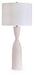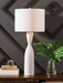 This table lamp is a forward-thinking take on monochromatic design. An elongated base with a cinched profile gives this artistic piece the illusion of grander height. And its crisp white finish pairs well with a variety of contemporary color palettes.