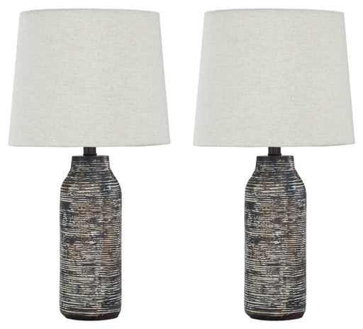 Signature Design by Ashley®Open-ended style. This table lamp offers a strong linear design, with a rustic metal base softened by the textural waves of a chic linen-look shade...