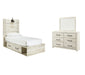 | Details | B192B1: Includes dresser with mirror, Made of engineered wood (MDF/particleboard) and decorative laminate, Wispy white finish over replicated oak grain with authentic touch, 6 smooth-gliding drawers, Drawer interiors are lined with a faux linen laminate for a clean, finished look, Large-scale hardware with dark finish, Mirror attaches to back of dresser, Assembly required, B192B21: Includes headboard, footboard, side storage, rails and slats, Made of engineered wood (MDF/particleboard) and decorative laminate, Wispy white finish over replicated oak grain with authentic touch, Large-scale hardware with dark finish, Decorative sconce light, LED with 3 AA batteries, 4 smooth-gliding storage drawers, 4 storage cubbies, 2 slim-profile USB charging ports, Power cord included; UL-listed, Bed does not require additional foundation/box spring; accommodates most zero clearance adjustable bases with the addition of a bunkie board, Mattress available, sold separately, Assembly required, | |