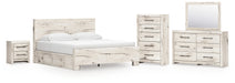 Lawroy King Panel Bed with Storage, Dresser, Mirror, Chest and Nightstand