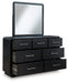 | Details | B821B5: Includes upholstered panel headboard, footboard and rails , Made with hardwood solids and ash veneer, Black finish on textured wood grain surface , Waterfall edges, Polyester upholstery, Foundation/box spring required, sold separately, Mattress available, sold separately, Assembly required, B821B1: Includes dresser and mirror, Made with hardwood solids and ash veneer, Black finish on textured wood grain surface , Burnished nickel-tone pulls, Waterfall edges, 7 smooth-gliding drawers with fully finished interior, dovetail construction and heavy duty ball-bearing side glides, Mirror attaches to back of dresser, B821-46: Made with hardwood solids and ash veneer, Black finish on textured wood grain surface, Burnished nickel-tone pulls, Waterfall edges, 5 smooth-gliding drawers with fully finished interior, dovetail construction and heavy duty ball-bearing side glides, B821-91: Made with hardwood solids and ash veneer, Black finish on textured wood grain surface, Brushed nickel-tone pulls, Waterfall edges, Smooth-gliding drawer with fully finished interior, dovetail construction and heavy duty ball-bearing side glides, Lower cubby shelf with built-in LED nightlight, 110V power supply with USB-A and USB-C charging ports, Power cord included; UL Listed, | |