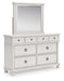 | Details | PCB823B5: Includes headboard/footboard panels, posts and poster rails , Made with hardwood solids, veneers and MDF substrates , Side rails feature laminated solid hardwood slat support rails (or LVL) with glued and screwed blocking for added strength, Rubbed antiqued white finish , Foundation/box spring required, sold separately, Mattress available, sold separately , Assembly required, PCB823B1: Includes dresser and mirror, Dresser made with hardwood solids, veneers and MDF substrates , Mirror made with solid wood, Rubbed antiqued white finish, Metal hardware with pewter-tone finish, 8 smooth-gliding drawers with fully finished interiors, French/English dovetail construction and heavy-duty ball-bearing side glides, Top drawers felt lined, Mirror attaches to back of dresser, PCB823-93: Made with hardwood solids, veneers and MDF substrates, Rubbed antiqued white finish, Metal hardware with pewter-tone finish, 3 smooth-gliding drawers with fully finished interiors, French/English dovetail construction and heavy-duty ball-bearing side glides, Top drawer felt lined, 110V power supply with USB-A and USB-C charging ports, Power cord included; UL listed, | |