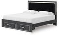 | Details | Includes upholstered panel headboard, storage footboard, platform rails and roll slats , Made with engineered wood (MDF/particleboard/plywood) and decorative laminate for the right balance of affordability and durability , Matte black finish with subtle replicated wood grain, Decorative laminate replicates natural or man-made material surfaces with consistent color, pattern and texture , Polyester upholstery , Chrome-tone and glitter accents, Large-scale chrome-tone handles with faceted details, 2 smooth-gliding drawers , Drawer interiors are lined with a faux linen laminate for a clean, finished look , Bed does not require additional foundation/box spring; accommodates most zero clearance adjustable bases with the addition of a bunkie board, Mattress available, sold separately, Minor assembly required | |