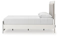 | Details | Includes upholstered panel headboard, panel footboard, platform rails and roll slats , Made with engineered wood (MDF/particleboard/plywood) and decorative laminate for the right balance of affordability and durability , Matte white finish with subtle replicated wood grain , Decorative laminate replicates natural or man-made material surfaces with consistent color, pattern and texture , Polyester upholstery , Chrome-tone and glitter accents, Bed does not require additional foundation/box spring; accommodates most zero clearance adjustable bases , Mattress available, sold separately, Minor assembly required | |