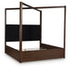 | Details | Includes canopy, upholstered poster headboard, footboard, rails, posts and slats, Made with hardwood solids, mango wood veneer and MDF substrates , Side rails feature laminated solid hardwood slat support rails (or LVL) with glued and screwed blocking for added strength, Complex, rich dark brown finish, Foam headboard cushion with polyester upholstery , Measure room, including ceiling height, to ensure bed clears fans and light fixtures, Foundation/box spring required, sold separately , Mattress available, sold separately , USB-A and USB-C charging ports, Power cord included; UL Listed, Assembly required | |
