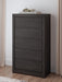 Find serene simplicity in the clean lines and dark neutral tones of this chest of drawers. It’s a sincere approach to modern elegance, giving you high style at a great value. A sleek hardware-less design creates a fuss-free look. Short on storage? This chest's smooth-gliding drawers keep clothes and clutter neatly tucked away.