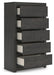 | Details | Made with engineered wood (MDF/particleboard/plywood) and decorative laminate for the right balance of affordability and durability, Dark charcoal finish over replicated oak grain, Decorative laminate replicates natural or man-made material surfaces with consistent color, pattern and texture, Recessed hand grabs create hardware-less effect, 5 smooth-gliding drawers, Drawer interiors are lined with a faux linen laminate for a clean, finished look, Safety is a top priority, clothing storage units are designed to meet the most current standard for stability, ASTM F 2057 (ASTM International), Drawers extend out to accommodate maximum access to drawer interior while maintaining safety, Assembly required | |