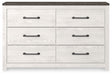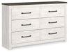 | Details | Made of engineered wood (MDF/particleboard), and decorative laminate, White rustic finish with replicated cedar grain, Rustic gray planked replicated oak grain with authentic touch, 6 smooth-gliding drawers with faux linen lining, Large scale dark colored handles, Safety is a top priority, clothing storage units are designed to meet the most current standard for stability, ASTM F 2057 (ASTM International), Drawers extend out to accommodate maximum access to drawer interior while maintaining safety, Assembly required | |