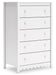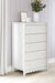 | Details | Made with engineered wood (MDF/particleboard/plywood) and decorative laminate for the right balance of affordability and durability, Decorative laminate replicates natural or man-made material surfaces with consistent color, pattern and texture, Matte white finish, 5 smooth-gliding drawers with vinyl-wrapped sides and back for durability, Safety is a top priority, clothing storage units are designed to meet the most current standard for stability, ASTM F 2057 (ASTM International), Drawers extend out to accommodate maximum access to drawer interior while maintaining safety, Assembly required | |