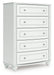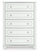 | Details | Made with engineered wood (MDF/particleboard/plywood) and decorative laminate for the right balance of affordability and durability, Matte white finish, Decorative laminate replicates natural or man-made material surfaces with consistent color, pattern and texture, Crystal drawer knobs, 5 smooth-gliding drawers, Drawer interiors are lined with a faux linen laminate for a clean, finished look, Safety is a top priority, clothing storage units are designed to meet the most current standards for stability, ATM F 2057 (ASTM International), Drawers extend out to accommodate maximum access to drawer interior while maintaining safety, Minor assembly required | |