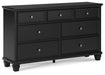 | Details | Made with hardwood solids, birch veneer and MDF substrate, Black painted finish, 7 smooth-gliding drawers with dovetail construction and ball-bearing side glides, Round metal drawer knobs with satin nickel-tone finish, Framed drawer fronts, Tapered feet | |