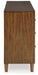 This dresser is perfect for contemporary or mid-century interiors. Its wood-tone finish is versatile and timeless. The drawers, designed with exquisite framing and elongated wooden pulls, enhance the overall aesthetic. Whether you want to refresh your entire bedroom or add a few key pieces, this is the ideal choice.