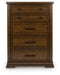 Style, simplicity and charm are hallmarks of this chest of drawers. Created with casual spaces in mind, it has the versatility to suit styles from craftsman to modern farmhouse. The rich brown finish aligns with your refined-meets-relaxed approach to everyday style. And for a timeless touch, five drawers with picture frame detailing accommodate your needs.