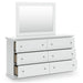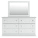 | Details | B139B42: Includes panel headboard/footboard and rails, Made with engineered wood (MDF/particleboard/plywood) and decorative laminate for the right balance of affordability and durability, Replicated solid white paint, Decorative laminate replicates natural or man-made material surfaces with consistent color, pattern and texture, Foundation/box spring required, sold separately, Mattress available, sold separately, Assembly required, B139B40: Includes dresser and mirror, Made of engineered wood (MDF/particleboard), Knobs with pewter-tone finish, Scalloped moulding, 6 smooth-operating drawers, Includes tipover restraint device, Mirror attaches to back of dresser; can also be mounted on wall horizontally or vertically, Safety is a top priority, clothing storage units are designed to meet the most current standard for stability, ASTM F 2057 (ASTM International), Drawers extend out to accommodate maximum access to drawer interior while maintaining safety, B139-46: Made of engineered wood (MDF/particleboard), Pewter-tone knobs, Scalloped moulding, 5 smooth-operating drawers, Small Space Solution, Includes tipover restraint device, Safety is a top priority, clothing storage units are designed to meet the most current standard for stability, ASTM F 2057 (ASTM International), Drawers extend out to accommodate maximum access to drawer interior while maintaining safety, B139-91: Made of engineered wood (MDF/particleboard), Pewter-tone knobs, 1 smooth-operating drawer, 1 storage cubby, Scalloped moulding, Small Space Solution, | |