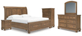 Feddinger King Storage Sleigh Bed with Mirrored Dresser, Chest and Nightstand