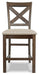 This upholstered bar stool might be simple at first sight, but a closer look reveals beauty in the details. With a distressed nutmeg finish, antiqued nailhead trim and textured polyester upholstery, it's beaming with charm. Cushioned seat ensures long, lingering meals are enjoyed in comfort.