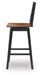 | Details | Made with solid wood frame, Seat with butcher block veneer pattern in deep brown wood-tone finish, Frame with warm satin black finish, Contoured seat, 360-degree swivel, Footrest for added support, Assembly required | |