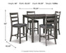 | Details | Includes counter height table and 4 barstools, Made of wood, veneer and engineered wood, Medium charcoal gray finish, Ladderback barstools, Cushioned seats covered in textured gray polyester upholstery, Table with tapered leg design, Assembly required | |