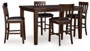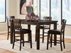 Details D596-32: Made with hardwood solids, select oak veneers and engineered wood, Dry, smoky dark brown oak finish, Self-storing butterfly leaf is a flexible, space-saving solution, Leaf folds away under table top when not in use, Seats up to 8, Assembly required, D596-124: Made of veneers, wood and engineered wood, Vinyl upholstery, Cushioned seat, Slat back design,
