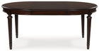 | Details | Made with hardwood solids, cherry veneer, cast resin components and engineered wood substrates, Cherry brown finish, Removable center leaf, Seats up to 6, Assembly required | |