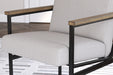 Details H632-44: Made with mango wood veneer, MDF substrate and metal, Light brown wood-tone finish, Gunmetal gray finish on frame, 3 smooth-gliding drawers, Open raceway for power cord management, Assembly required, H632-01A: Made with metal frame and solid hardwood arm rail, Gunmetal gray finish, Polyester upholstery, Foam cushion, Assembly required,