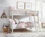 | Details | Includes twin bunk bed panels and twin ladder/rails/slats, Made with hardwood solids, birch veneer and MDF substrate, Antiqued white finish with grain texture, Top bunk with protective side rails, Sturdy ladder leads to top bunk, The Consumer Product Safety Commission states top bunks not be used for children under 6 years of age, Bed does not require additional foundation/box spring; accommodates most zero clearance adjustable bases, Mattresses available, sold separately?, Assembly required | |