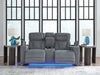 | Details | One-touch power control with adjustable positions, Easy View™ adjustable headrest and zero-draw USB port, Zero-draw technology only consumes power when the USB receptacle is in use, Extended ottoman for enhanced comfort, Corner-blocked frame with metal reinforced seat, Attached cushions, High-quality foam cushions wrapped in poly fiber, Next-Gen Nuvella is a performance fabric that is soft, easy to clean, stain-resistant and durable, Clean fabric with mild soap and water, let air dry; for stubborn stains, use a solution of 4 oz. bleach to 28 oz. water, Ambient blue LED lighting on base and storage cutouts for a theater-style experience, Storage armrests with 2 cup holders; center console with 2 cup holders and hidden storage, Power cord included; UL Listed | |