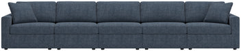 Details Includes 5 modular pieces: left-arm facing corner chair, 3 armless chairs and right-arm facing corner chair, "Left-arm" and "right-arm" describe the position of the arm when you face the piece, Modular pieces can float anywhere; sides are finished (with no connectors), Corner-blocked frame; reversible seat and back cushions; high-quality foam cushions wrapped in poly fiber, Throw pillows included; soft polyfill, Polyester upholstery, Next-Gen Nuvella™ is a family-friendly fabric that is soft, easy to clean, stain-resistant and durable, Easy-to-remove zippered covers for machine washing, Clean fabric with mild soap and water, let air dry; for stubborn stains, use a solution of 4 oz. bleach to 28 oz. water, Non-skid legs, Platform foundation system resists sagging 3x better than spring system after 20,000 testing cycles by providing more even support, Smooth platform foundation maintains tight, wrinkle-free look without dips or sags that can occur over time with sinuous spring foundations