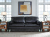 This sofa embodies timeless mid-century elegance with its linear design, sleek track arms and tapered legs. Genuine leather in the seating area adds a luxurious touch to the overall look. Experience endless style opportunities for today's living spaces.