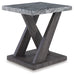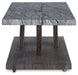 Details Includes coffee table and 2 end tables, Made with decorative paper laminate and MDF substrate, Faux gray marble top, Weathered gray wood grain finish on legs and lower shelf, Coffee table with casters for easy mobility, Assembly required