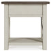 | Details | Made of wood, white oak veneers and engineered wood, Two-tone (weathered gray and antique white) finish, Chairside end table features plank-styled top, Smooth-gliding drawer perfect for holding remotes and more, Integrated 110V power supply with dual USB charging ports, Black faceted hardware, Assembly required | |