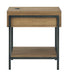 | Details | Made with oak veneer and engineered wood, Light, natural finish, Metal frame with black finish, Open storage cubby, Lower shelf, 110V power supply with dual USB charging port, Power cord included; UL Listed, Assembly required | |