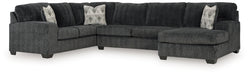 Details Includes 3 pieces: right-arm facing corner chaise, armless loveseat and left-arm facing sofa, "Left-arm" and "right-arm" describe the position of the arm when you face the piece, Corner-blocked frame, Attached back and loose seat cushions, High-quality foam cushions wrapped in poly fiber, Accent pillows included, Pillows with soft polyfill, Polyester upholstery and pillows, Exposed feet with faux wood finish, Platform foundation system resists sagging 3x better than spring system after 20,000 testing cycles by providing more even support, Smooth platform foundation maintains tight, wrinkle-free look without dips or sags that can occur over time with sinuous spring foundations