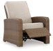 | Details | All-weather resin wicker handwoven over rust-resistant aluminum frame with durable powder coated finish, Powder coated steel recliner mechanism, Press-back reclining motion, Solution-dyed high-performance fabric, Nuvella is an outdoor fabric that can be cleaned and offers UV resistance, Clean fabric with mild soap and water, let air dry; for stubborn stains, use a solution of 4 oz. bleach to 28 oz. water, Stainless steel hardware, Designed to withstand the harsh elements of the outdoors, Assembly required | |
