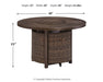 | Details | 48" round fire pit with CSA-approved 55,000 BTU stainless steel burner, glass beads, burner cover and protective all-weather cover, All-weather, handwoven resin wicker over rust-free aluminum frame, Aluminum wood-look top, Door conceals gas propane tank (not included), Convertible to natural gas, Battery-operated ignition system with adjustable flame control; battery included, Gas line or propane tank connector hose not provided, Assembly required | |