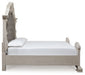 | Details | Includes upholstered panel headboard, footboard, rails and slats, Made with hardwood solids, oak and ash swirl veneers, MDF substrates and cast resin components, Side rails feature laminated solid hardwood slat support rails (or LVL) with glued and screwed blocking for added strength, Antiqued white finish, Polyester upholstery, Foundation/box spring required, sold separately, Mattress available, sold separately , Assembly required | |