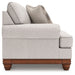 Fresh yet classic. That’s the beauty of this loveseat. Dressy and also soft to the touch, its organic neutral-toned upholstery is sure to bring a transitional farmhouse aesthetic to your living space. Accent pillows in windowpane plaid infuse a cozy and inviting farmhouse sensibility, while a full wraparound base and decorative turned legs complete the loveseat's timeless look. It's the perfect place to unwind with your bestie after a long day.