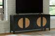 | Details | Made with wood and veneer, Black finish with light sandblasted effect, Woven cane door fronts, Metal door pulls with black finish, 4 doors with soft-close hinges, 2 shelves, Openings in back for electronics, Assembly required | |