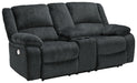 Built for luxury, this power reclining loveseat with center console lets you kick back in reliable style. The thick, softly textured chenille upholstery provides a comfy surface on which to lounge. With bustle back construction and thickly cushioned armrests, this piece gives you the dependable, powered support you need to unwind with the convenience of the center console to ease your evening.