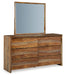 | Details | Includes dresser and mirror, Made with sheesham wood, veneer and MDF substrate, Clear natural wood-tone finish , Front frame with thick beveled edge, 6 smooth-gliding drawers with fully finished interior, dovetail construction and heavy duty ball-bearing side glides, Mirror attaches to back of dresser | |