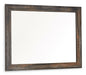 Details Frame made with engineered wood (MDF/particleboard/plywood) and decorative laminate for the right balance of affordability and durability, Brown rustic finish with burnt orange and teal accents in a replicated wood grain with authentic touch, Decorative laminate replicates natural or man-made material surfaces with consistent color, pattern and texture, Can be attached to back of dresser or wall mounted horizontally or vertically