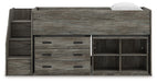 | Details | Includes loft bed, left storage steps with loft ends, roll slats, loft bookcase and loft drawer storage, Made with engineered wood (MDF/particleboard/plywood) and decorative laminate for the right balance of affordability and durability, Rustic warm gray finish over replicated oak grain with authentic touch, Decorative laminate replicates natural or man-made material surfaces with consistent color, pattern and texture, 4 storage cubbies, 3 smooth-gliding storage drawers, Bed does not require additional foundation/box spring, Mattress available, sold separately, Assembly required | |