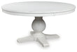 Relaxed living and cozy comfort—that’s what traditional farmhouse design is all about. And what better way to embrace your love of rustic country style than with this dining table. Celebrating the beauty of simplicity, its thick antiqued white top and hearty pedestal base marry functionality with classic appeal for a fresh feel. This piece effortlessly pairs with assorted chairs in the collection for an eclectic look.