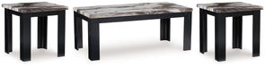 | Details | Includes coffee table and 2 end tables, Made with decorative paper laminate and MDF substrate, Top with faux marble laminate, Base with dark replicated wood grain finish | |
