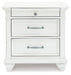 Give your retreat vintage charm and valuable bedside storage with this nightstand. In a beautifully distressed whitewash finish, two drawers and a smaller top accessory drawer will help you keep bedtime essentials nearby in casual style. Generously scaled moulding from top to bottom, along with bun feet and drawer handles with a transitional aesthetic, give this nightstand character—evoking the feel of a quaint cottage escape.