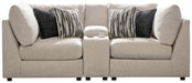 With its casual-contemporary aesthetic and modular design, this sectional makes way for high style and indulgent comfort. Rest assured, the thickly cushioned storage console includes not only a pair of cup holders, but also a USB port to keep you powered up while you unplug. Plush-to-the-touch chenille-feel upholstery in bisque beige is pure delight.