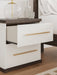 Looking to make a subtly striking statement in your bedroom? We've got you covered. This nightstand’s sophisticated two-tone treatment marries a warm brown finish over replicated walnut grain with a matte white finish. Rounded corners and a thick top radiate an air of modern panache, while sleek handles in a champagne finish add a sparkling touch to the spacious drawers. And built-in USB charging keeps your gadgets powered up. It’s a master class in contemporary yet comfortable character.