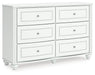Fit for a princess. This dresser’s crisp matte white finish pairs with charming elements like bun feet, crystal knobs and ornate beading—the perfect crowning touches for your girly girl. This spacious six-drawer piece is sure to make your little one feel like royalty.