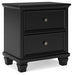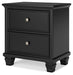 | Details | Made with hardwood solids, birch veneer and MDF substrate, Black painted finish, 2 smooth-gliding drawers with dovetail construction and ball-bearing side glides, Round metal drawer knobs with satin nickel-tone finish, Framed drawer fronts, Tapered feet | |